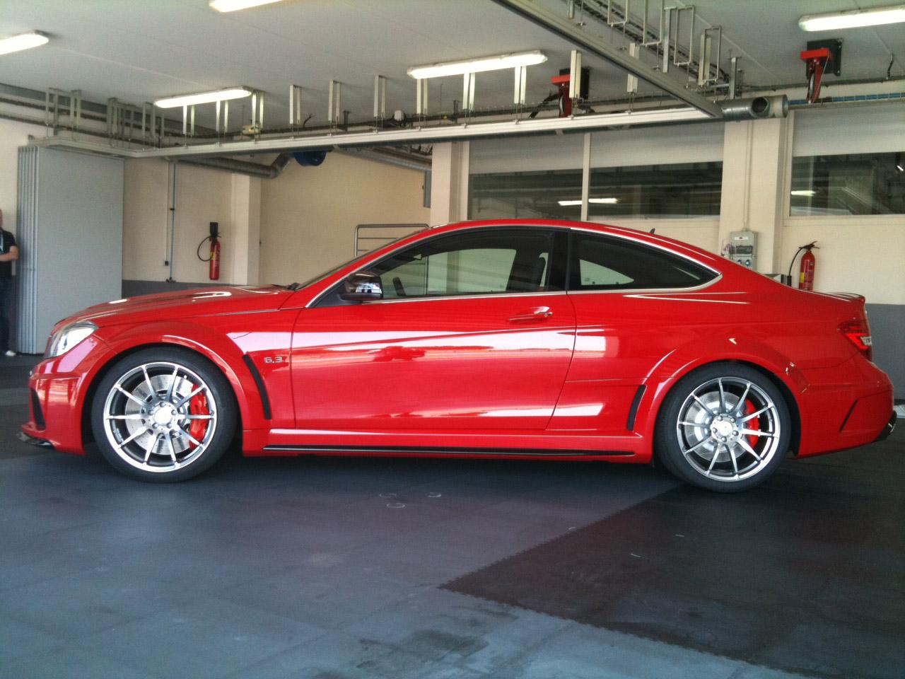 La casa automobilistica tedesca Mercedes ha presentato, nel corso di un evento presso il cirtuito Paul Ricard, per la prima volta nella sua completezza e senza il minimo camuffamento, la nuova C63 AMG Coupé Black Series, nuova declinazione iper-sportiva di Mercedes Classe C Coupé che si affianca alla già commercializzata Mercedes C63 AMG Coupé tout court: dopo mesi di sviluppo, dopo mesi di test su strada, dopo mesi di intenso lavoro ad Affalterbach, la nuova Black Series giunge finalmente tra noi. Classe C è la terza vettura a fregiarsi di questo titolo nle nuovo millennio: “Black Series”, infatti, è una nobile classificazione che è stata usata soltanto da Mercedes SL e dalla coupé Mercedes CLK. Ecco perché la nuova Mercedes C63 AMG Black Series è stata attesa per molto tempo e in molteplici occasioni è stata oggetto di indiscrezioni: la versione speciale – che pare non sarà commercializzata in un volume limitato – sarà esposta presso il Salone di Francoforte 2011 (la commercializzazione, dunque, inizierà soltanto successivamente: a cavallo tra l’anno corrente ed il successivo).