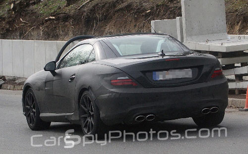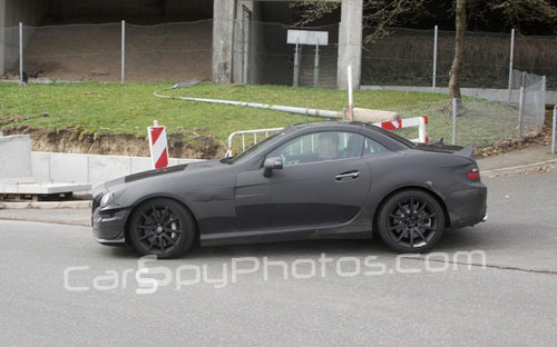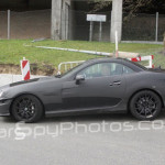 La nuova generazione di Mercedes SLK è appena stata commercializzata dall’azienda tedesca in Europa ed in Italia: torniamo ad occuparci della roadster con tetto in metallo perché il brand della Stella a Tre Punte ha iniziato lo sviluppo della versione AMG della nuova Mercedes SLK. Cioè? Una declinazione elaborata in ottica sportiva, dotata di alcune novità tecniche e di alcune novità estetiche ed equipaggiata con un motore potente, non disponibile per le altre versioni di Mercedes SLK. La piccola roadster con tetto rigido ripiegabile viene qui immortalata appena fuori dal Nurburgring: ormai sappiamo bene che il circuito tedesco viene usato dalle case automobilistiche, teutoniche e non, per sviluppare i nuovi modelli, in special modo se questi sono sportivi (ed è il nostri caso).