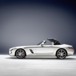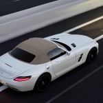 La nuova Mercedes SLS AMG Roadster viene dotata di un tetto in tessuto elettrico a tre strati, che garantisce grande comfort senza rovinare la linea della vettura (l’aspetto della sportiva rimane mozzafiato, dal sapore lievemente vintage). Il dispositivo di apertura e chiusura effettua il proprio movimento in appena undici secondi e lo fa anche se la nuova Mercedes SLS AMG Roadster si muove (la velocità non deve tuttavia superare i 50 chilometri orari): il sistema è elettroidraulico, realizzato in acciaio, alluminio e magnesio. Gli ingegneri Mercedes hanno fatto attenzione anche al vano di carico: con tetto ripiegato o con tetto esterno, il bagaglio mette a disposizione dei passeggeri 173 litri di spazio.