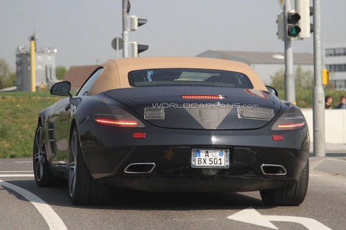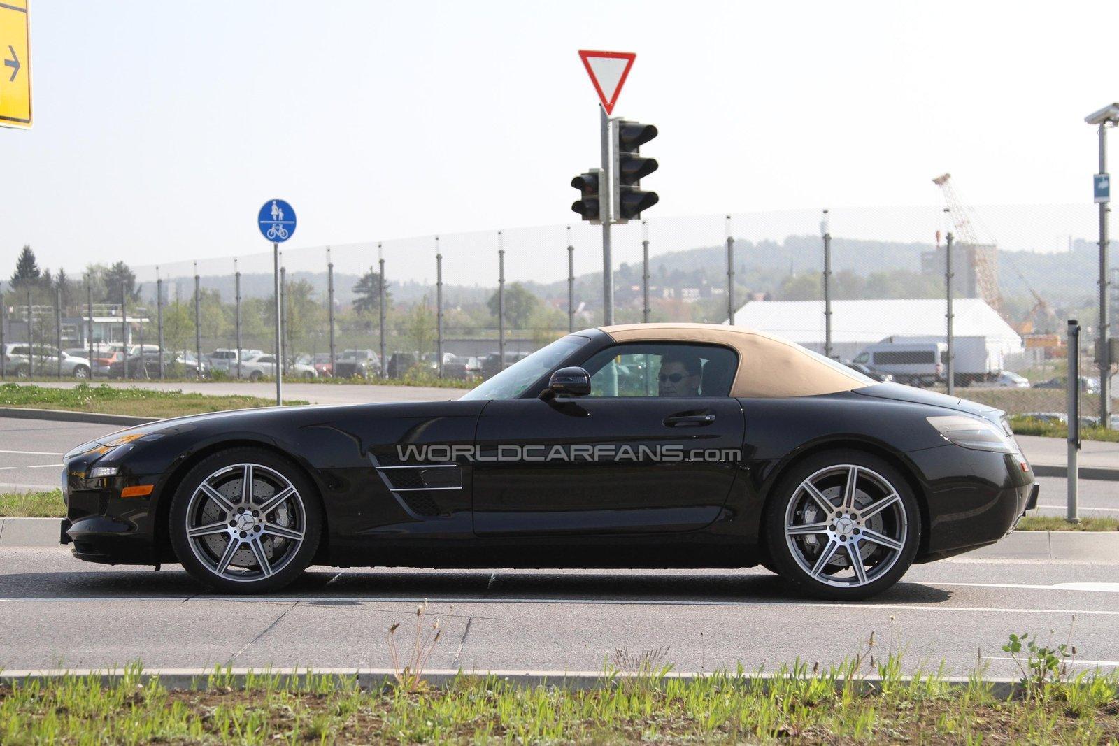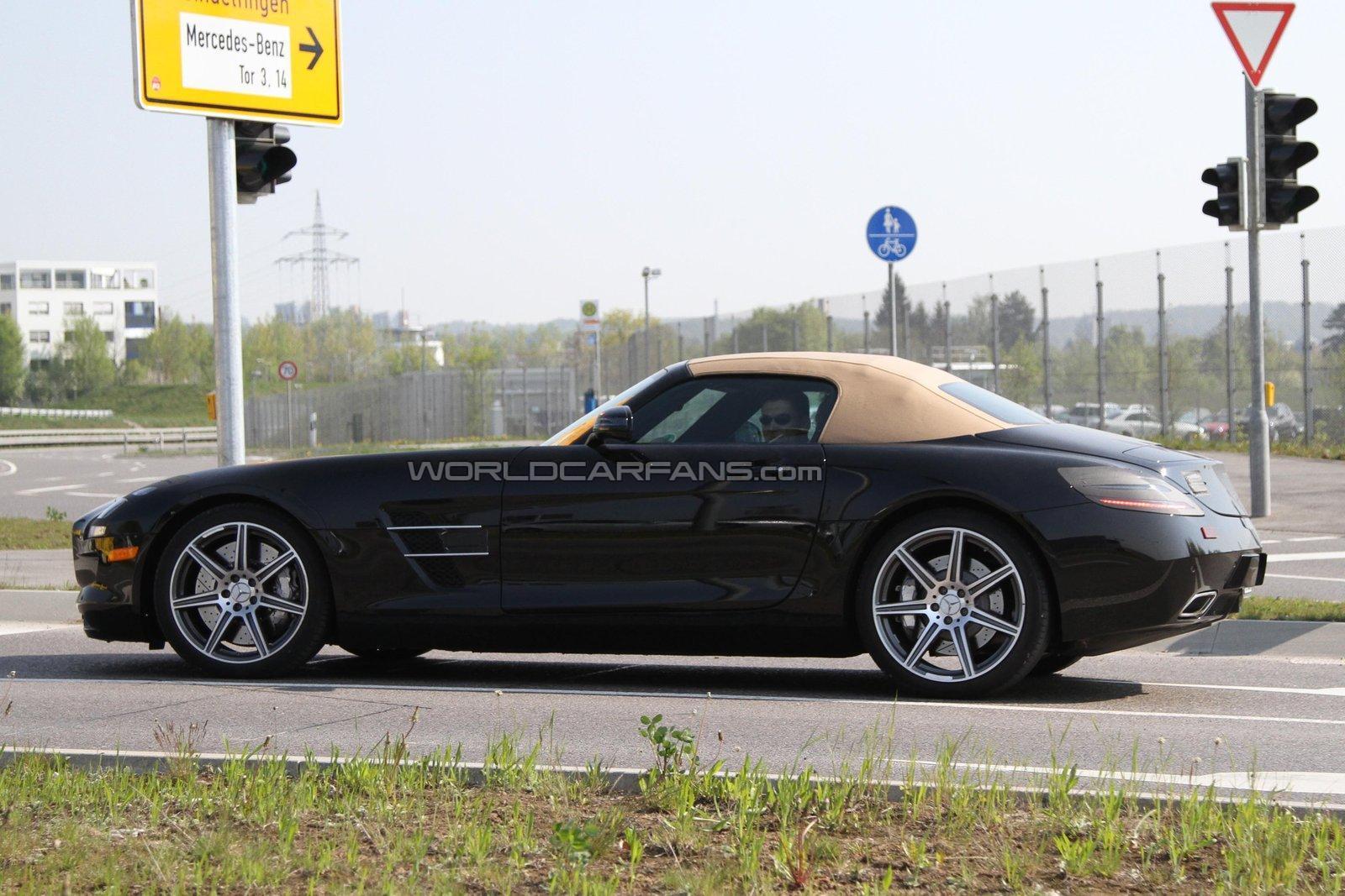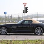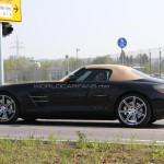 Abbiamo davvero bisogno delle foto ufficiali e di un solenne debutto, per conoscere la nuova Mercedes SLS AMG Roadster? No: queste recenti foto spia del modello, ad esempio, ci raccontato dettagliatamente, minuziosamente, quasi perfettamente l’aspetto estetico della supercar tedesca. Che dire? La nuova versione roadster della sportiva Mercedes SLS AMG mantiene inalterato il design (quella miscela di spunti retrò e suggestioni moderne) e cambia – come avevamo già notato, in occasioni precedenti – soltanto per quanto riguarda il tetto (ora diventato in tessuto, ripiegabile attraverso un sistema elettrico) e per quanto riguarda le due portiere (che non si sollevano verso l’alto come nel caso della fastback da cui ha origine, ma che si aprono verso l’esterno su un asse orizzontale, in maniera classica).