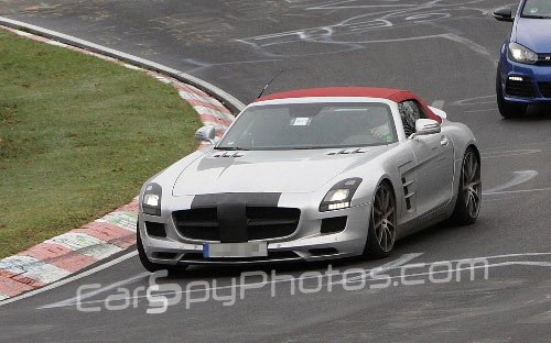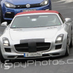 In queste immagini, la nuova Mercedes SLS AMG Roadster è praticamente spogliata da ogni camuffamento: la roadster sportiva di Stoccarda sarà presentata al Salone di New York 2011, cioè tra il 21 ed il 28 aprile prossimi, e il suo aspetto fisico è rimasto celato sino ad oggi; si tratta della versione cabriolet della supercar Mercedes SLS AMG, che il brand della Stella a Tre Punte ha confezionato insieme all’azienda di Affalterbach del Gruppo Daimler. La scenografia delle immagini è il Nurburgring, il tracciato celebre che sempre più le aziende motoristiche di mezzo globo utilizzano per mettere alla frusta i nuovi modelli; in questo caso specifico, ad ogni modo, dato che ci stiamo occupando di una supercar, il teatro dello sviluppo non poteva non essere l’Inferno Verde.