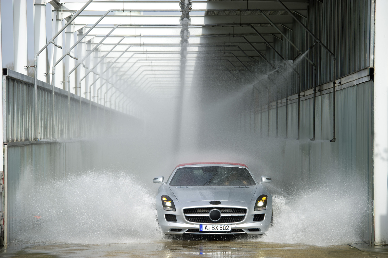 Il sistema di ripiegamento del tetto della nuova SLS AMG Roadster può essere azionato sino ad una velocità massima pari a cinquanta chilometri orari ed impiega undici secondi per completare il proprio movimento. Il brand l’ha testato nella maniera più rigida possibile, per assicurare lo stesso comfort della versione fastback e per garantire la qualità necessario ad un modello che costerà oltre 200mila euro. In caso di ribaltamento, due roll-bar di sicurezza fuoriescono dal corpo della cabriolet ed intervengono a proteggere i due occupanti dell’abitacolo di Mercedes SLS AMG Roadster.