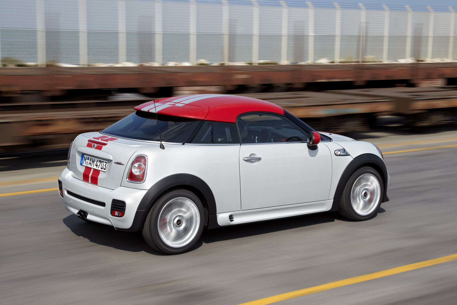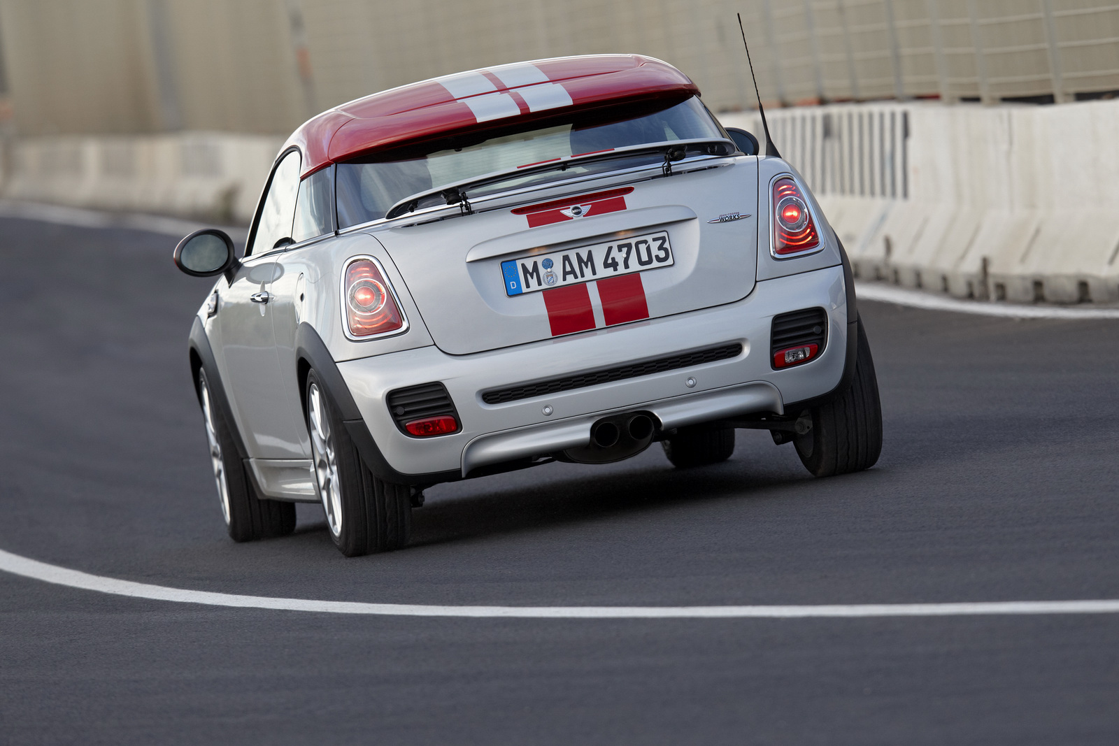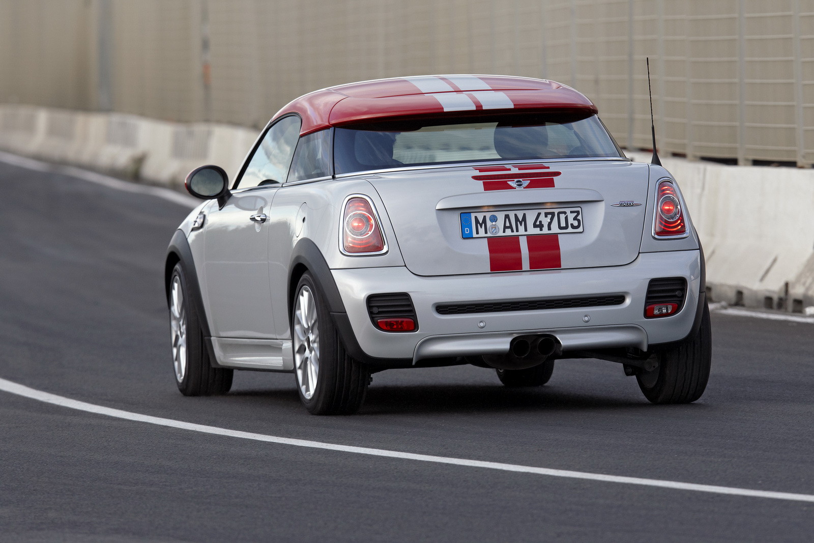 Il resto lo conosciamo bene: MINI Coupé ha le stesse forme tonde e prosperose di ogni altra MINI. La pin-up tre volumi, che vedremo al Salone di Francoforte 2011, viene dotata, però, di alcune caratteristiche sue personali, che la diversificano dagli altri modelli della gamma: uno spoiler che sale (> 80 km/h) e scende (< 60 km/h) automaticamente dalla carrozzeria, rivestimenti unici per l'abitacolo, nuove decorazioni ed un assetto più specifico, che rende la guida molto emozionante (almeno così sostengono quelli del Gruppo BMW).