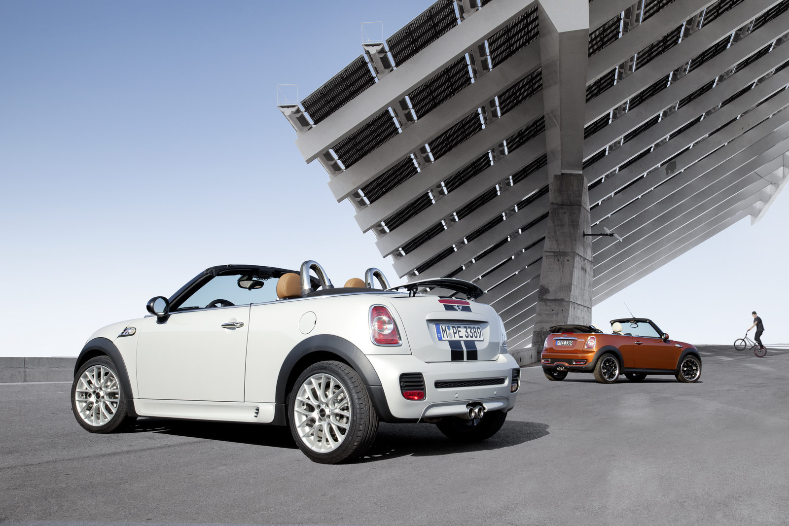 La nuova MINI Roadster misura 3.73 metri in lunghezza, 1.68 metri in larghezza e 1.39 metri in altezza: le stesse (approssimativamente) di MINI Cabriolet, da cui differisce, tuttavia, per i due posti in meno nell’abitacolo (ne guadagna il bagagliaio: 240 litri di spazio, qui, rispetto ai 125 della versione a quattro posti con tetto elettrico), per il lunotto frontale più inclinato di 13 gradi e per l’altezza, minore di due centimetri. Tutto il resto non cambia: la solita irriverenza firmata MINI, l’ormai classica sfrontatezza dell’utilitaria compatta (ma Premium!) del Gruppo BMW. La nuova MINI Roadster sarà proposta (come vale anche per la nuova MINI Coupé) con il motore 1.6 litri benzina da 122 cavalli (MINI Roadster Cooper), da 184 cavalli (MINI Roadster Cooper S) e da 211 cavalli (MINI Roadster John Cooper Works) e con il motore 2.0 litri diesel di origine BMW da 143 cavalli (MINI Roadster Cooper SD). Tutte saranno proposte con cambio manuale a sei marce, ma sarà disponibile anche un cambio automatico sequenziale a sei marce (non per la versione sportiva JCW). Per tutte la trazione sarà anteriore.