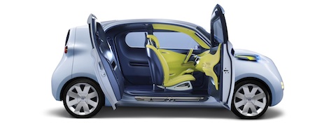 Nissan la fa da padrona al Salone di Parigi con il Townpod, che tradotto dall’inglese significa guscio urbano. Un veicolo commerciale leggero elettrico, pensato per la città: L’estetica è importante, i fari sono disposti in alto e separati dalla carrozzeria, con una serie di petali che si aprono e chiudono. All’interno invece, mancano interruttori meccanici, ma c’è una semplice levetta alla destra del sedile di guida che consente di cambiare marcia, e due pannelli touch screen posti al centro del cruscotto. Il sistema è collegato via Bluetooth al palmare del conducente e consente di interfacciare il navigatore con la lista degli appuntamenti programmati.