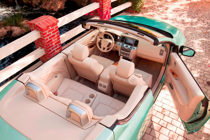 Il lavoro di modifica effettuato su Nissan Murano per realizzare la versione CrossCabriolet ha portato all’eliminazione, oltre che di un cospicuo pezzo di lamiera, di una portiera per lato. I tecnici della casa automobilistica nipponica Nissan hanno così scelto di allungare di circa 20 centimetri le due portiere rimaste e di eliminare, così, il montante laterale. Infine, il tetto è stato sostituito con un frammento di tessuto, sul quale figura anche un lunotto in vetro, e sono stati inseriti due roll-bar che fuoriescono in caso di ribaltamento del nuovo SUV-cabriolet Murano CrossCabriolet. Ah, quasi dimenticavo: la parte posteriore dell’automobile è stata parzialmente imbellettata, per far fronte alla perdita di armonia causata dalla scomparsa di una grossa fetta di metallo, superiormente parlando.