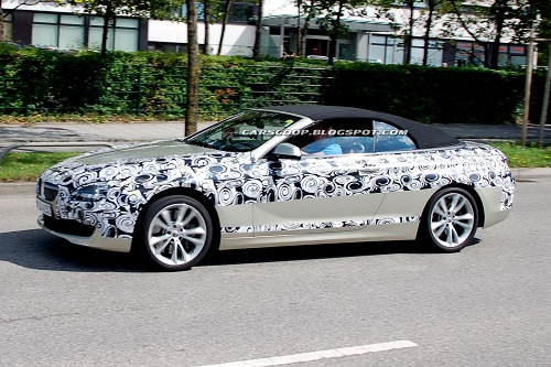 Possiamo concedere un pizzico di leggerezza cosmetica? Direi di si: la vettura pare ben riuscita, più armonica, più docile, più Premium di quanto prima era riuscita ad essere. La nuova BMW Serie 6 acquista i gruppi ottici a mandorla anteriori e la mascherina a doppio rene prominente, la forma fluida, la linea di fiancata regolare, alta, la coda morbida, dolce. I due muletti spiati dalle immagini confermano che il costruttore ha mantenuto il soft-top (o tetto in tela, che, probabilmente, verrà offerto in differenti scelte cromatiche), che, a mio avviso, elargisce sensazioni di raffinatezza ed eleganza maggiori.