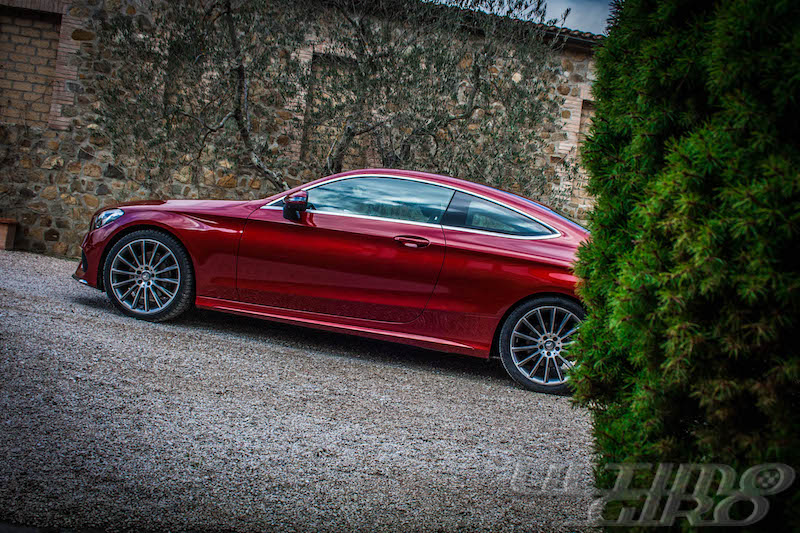 Ecco, dunque, che rispetto al precedente modello il nuovo Coupé si modifica leggermente in dimensioni. La lunghezza aumenta di 60 millimetri, il tetto diventa spiovente, l’assetto scende di 15 mm rispetto alla berlina (conferendo così uno stile ancora più slanciato), raggiungendo il metro e quaranta. La linea di cintura è alta ed avvolge in modo sinuoso la Coupé, che fra l’altro si snellisce anche di una cinquantina di kg. Pochi, sulla carta, ma nell’assetto generale indicano che in Mercedes è stato tentato un lavoro per rendere ancora più dinamico un modello che ha già un’indole descritta nel nome.