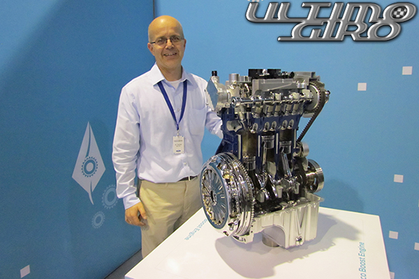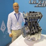 Sicurezza e tecnologia legate a doppio filo, quindi. Ma la tecnologia non è solo quella dei sistemi hi-tech presenti nella vettura, ma anche quella applicata ai motori. Uno su tutti quello eletto motore dell’anno 2012, l’EcoBoost 1.0 (nell’immagine il motore ed il suo “papà”, il Dr. Thomas Zenner) che, dopo la nuova Focus e la nuova B-MAX, debutta anche sulla nuova Fiesta 2013. Ma l’offerta dei motori per la nuova piccola di casa Ford è davvero ampia. Tra questi ne annovera ben cinque, sia diesel che benzina, con emissioni inferiori ai 100g/km di CO2.