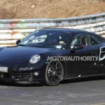PIU’ LARGA DELLA PORSCHE CARRERA. Nel corso dell’attuale generazione di Porsche 997, la 991 Turbo è circa 44 millimetri più larga in confronto alla Carrera: allo stesso modo dovrebbe avvenire con la nuova Porsche 991. Il prototipo è stato catturato all’interno di alcune foto spia al Nurburgring è si possono notare come siano presenti tutti gli elementi caratteristici dei modelli con sovralimentazione: ci stiamo riferendo alle prese d’aria che sono state posizionate sui parafanghi posteriori, ma anche quelle che si trovano sul frontale e hanno dimensioni più elevate, ma anche un alettone fisso nella parte posteriore.