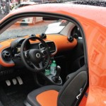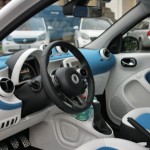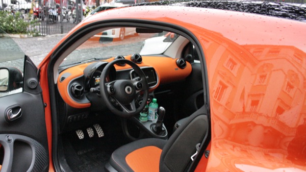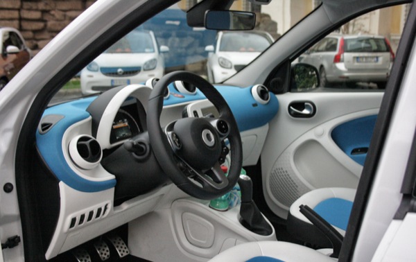 Ovviamente il design è stato totalmente ripensato: ora la smart forfour assomiglia molto, molto di più alla sua sorellina “minore” (o gemella eterozigote, secondo le considerazioni fatte sopra), con interni a doppio colore (nelle versioni top) che ne sottolineano l’aspetto dinamico e rampante. A dimostrazione che Mercedes non teme di perdere mercato fra le due versioni della nuova smart c’è la differenza di prezzo fra il modello a due e quello a quattro posti: solo 650 euro. Il modello base della nuova forfour, infatti, parte da 13400 euro (motore da 71CV e potenza di 52 kW). Di serie su tutte le vetture c’è un cambio manuale a 5 marce (sul misto stretto ci si diverte molto), il Cool & Audio System, fari alogeni, ABS ed airbag (anche quelli per le ginocchia), crosswind assist, ESP più una serie di altre caratteristiche.