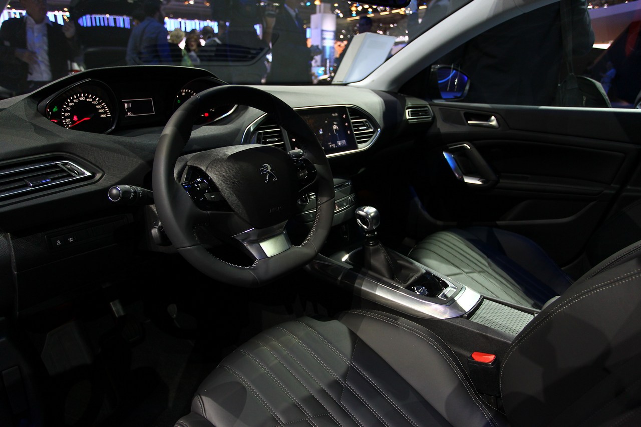Nell’abitacolo della nuova 308 vengono subito messe in risalto le importanti modifiche che sono state adottate, sopratutto derivanti dall’impiego di nuovi materiali e tessuti. Interessante notare anche la presenza del Peugeot i-Cockpit, che si ispira al prototipo SR1, che combina in modo equilibrato il volante compatto e il quadro strumenti, ma anche la consolle centrale su cui si trova uno schermo touchscreen da 9,7 pollici.