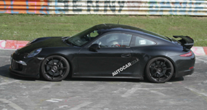 PRESENTAZIONE FISSATA A MARZO 2013. La nuova Porsche 911 GT3 verrà svelata nel corso del mese di marzo del 2013, esattamente in corrispondenza dell’annuale edizione del Salone di Ginevra, mentre gli ordini dovrebbero partire pochi giorni dopo. La nuova Porsche 911 GT3 potrà contare sulla spinta dell’ultima generazione del propulsore da 3,8 litri flat six aspirato, che prenderà il posto del motore da 4 litri che è stato utilizzato all’interno della 997 GT3 RS 4.0. La potenza sviluppata dovrebbe arrivare fino a 450 cavalli circa, garantendo uno sprint da 0 a 100 km/h in un lasso di tempo inferiore ai quattro secondi, mentre il picco di velocità massima si dovrebbe aggirare intorno ai 320 km/h.