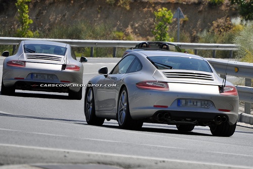 La nuova Porsche 911 viene caratterizzata da uno stile che potremmo definire “più sottile” dell’attuale: la carrozzeria sembra essere dimagrita ed i segni, tracciati dai designer della casa automobilistica di Zuffenhausen del Gruppo Volkswagen, sembrano essere meno spessi, più lievi e più pungenti. Nel complesso, però, la nuova 911 è molto simile a tutte le altre generazioni, che l’hanno preceduta: inconfondibile, ormai, la forma della carrozzeria, sporgente nella parte frontale ed elegantemente tondeggiante nella parte posteriore, per quanto riguarda la coupé, o bombata nella coda, per quanto riguarda la versione cabriolet. La nuova Porsche 911 dovrebbe essere proposta in due versioni al momento del lancio: Carrera S e Carrera. Si dice che per entrambe sarà utilizzato lo stesso motore 3.4 litri boxer (sei cilindri) benzina da 400 cavalli e 350 cavalli (in base alla variante scelta). Si dice anche che la vettura sportiva della Cavallina dovrebbe essere offerta con una trasmissione (standard) manuale a sette marce e che sarà disponibile anche la trasmissione robotizzata PDK a sette marce (doppia frizione).