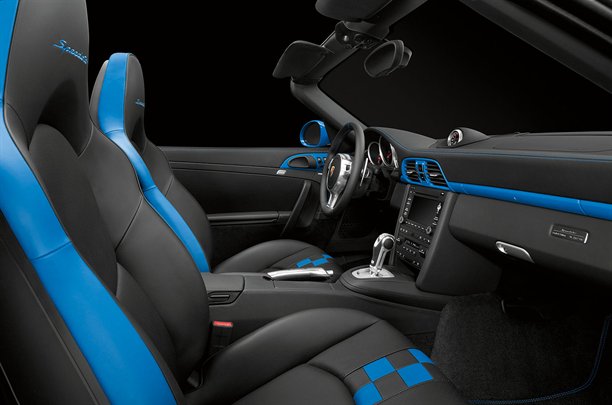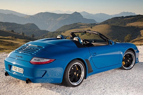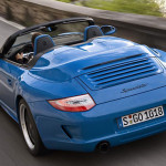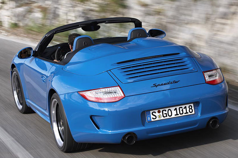 La nuova Porsche 911 Speedster viene realizzata a partire dalla versione Cabriolet della sportiva teutonica: è, forse, una delle ultime coniugazioni, create dalla casa automobilistica del Gruppo Volkswagen, della quinta generazione di Porsche 911. La prossima, che pare si indicherà, industrialmente parlando, con il codice 991, verrà commercializzata durante l’anno venturo. Per riconoscere la versione Speedster è necessario fare attenzione al lunotto anteriore, maggiormente inclinato e ridotto, in dimensione, di 60 millimetri, ma è sufficiente sottolineare la presenza della protuberanza posteriore: due gobbe, disegnate dalla carrozzeria, incombono sulle sedute dell’abitacolo.