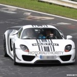 Sono state rilasciate sul web delle nuove foto spia che riguardano la prossima Porsche 918 Spyder, mentre era impegnata in alcuni collaudi e test sul celebre circuito del Ring.