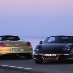 Si chiama Boxster 981: la terza generazione della spyder della Cavallina ha ottenuto senza dubbio un’abbondante dose di maturità e viene finalmente caratterizzata da un design personale, non troppo simile a quello di Porsche 911. Certo: le forme, le linee e le proporzioni sono tipicamente Porsche e su questo non c’è alcun dubbio. Ma gli uomini della Cavallina hanno usato un pizzico di originalità nell’evolvere Porsche Boxster: fari anteriori più rigidi e meno ovali di quelli di Porsche 911, fari posteriori più morbidi e più grandi, la profondissima nervatura che scalfisce la parete laterale e che termina in una presa d’aria grande quasi quanto l’intera portiera, i due nervi che increspano il cofano motore posteriore, lo spoiler che unisce i due gruppi ottici posteriori e i passaruota bombati, molto gommosi, rendono Boxster unica, immediatamente riconoscibile. Non mancano rimandi ad altre automobili della casa di Zuffenhausen: sulla carrozzeria della nuova roadster si respirano gli influssi della supercar Porsche 918 Spyder, mentre all’interno dell’abitacolo si annusano gli influssi di Porsche Panamera (la plancia scende tra le due sedute in maniera molto visibile, dividendo nettamente passeggero e pilota).