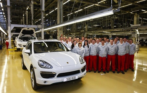 Cento mila Porsche Cayenne II prodotte dalla sua nascita: l’immagine che oggi proponiamo alla vostra attenzione dice questo. L’ha divulgata la casa automobilistica di Zuffenhausen, per festeggiare l’evento con curiosi ed appassionati. La fotografia ritrae l’esemplare del SUV Premium tedesco che ha toccato l’importante traguardo, di colore bianco, destinato ad un cliente brasiliano e dotato di motore V8 benzina, accanto ad una parte del team di lavoratori impiegato all’interno dello stabilimento tedesco di Lipsia, dove nasce Cayenne (ma non solo, come fra qualche riga vedremo). La seconda generazione di Porsche Cayenne è stata introdotta all’interno del listino nel 2010 e la pietra miliare raggiunta ieri è il sintomo più evidente del buon successo della vettura, nonostante la crisi economica europea e americana che sta fiaccando il mercato dell’automobile.