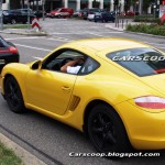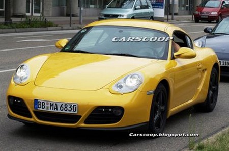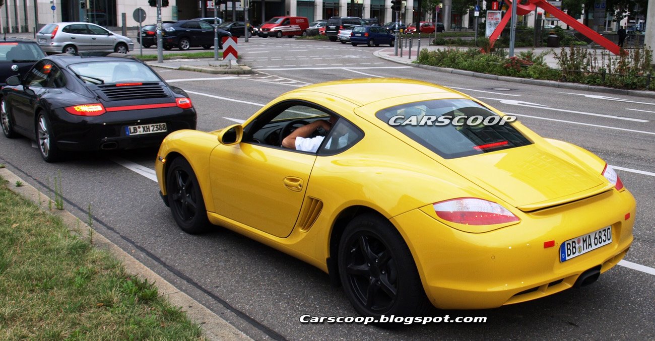 Finalmente, ecco a voi la nuova Porsche Cayman 2009 in tutto il suo splendore, senza camuffamenti e con una colorazione gialla molto accesa, che la fa spiccare in maniera netta dall’anonimo contesto stradale in cui si trova (non per niente parliamo di foto spia).