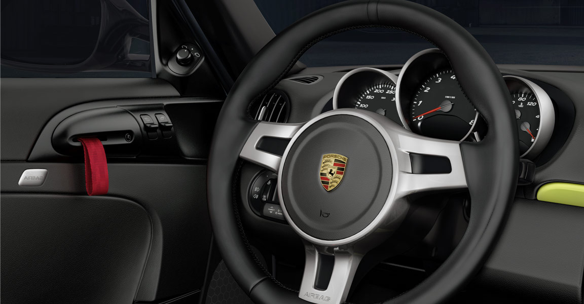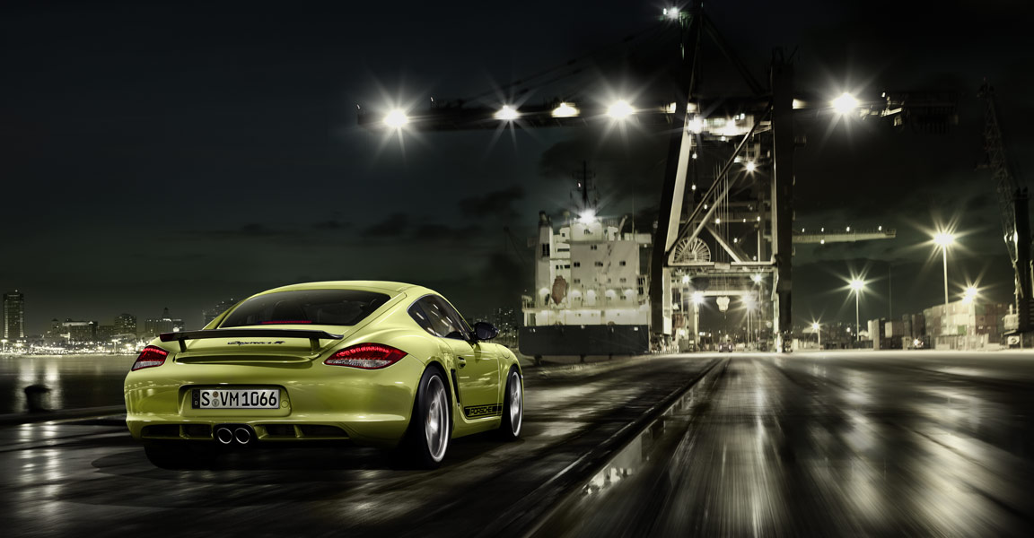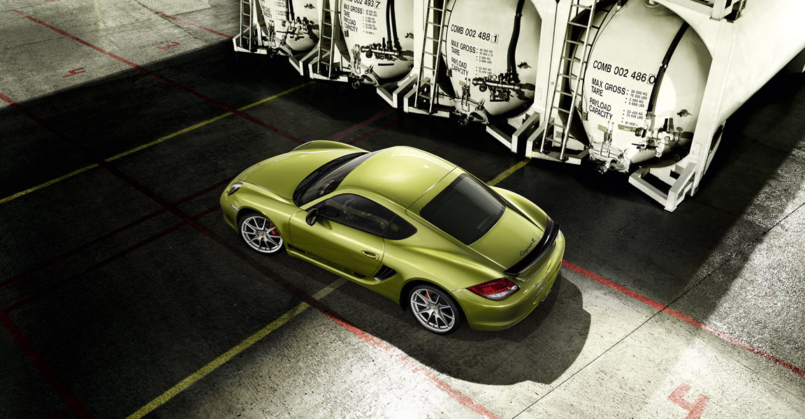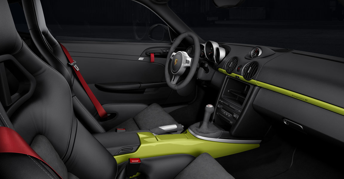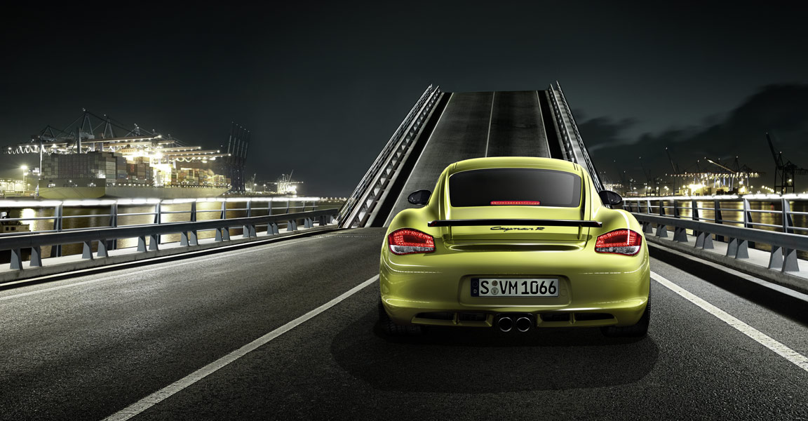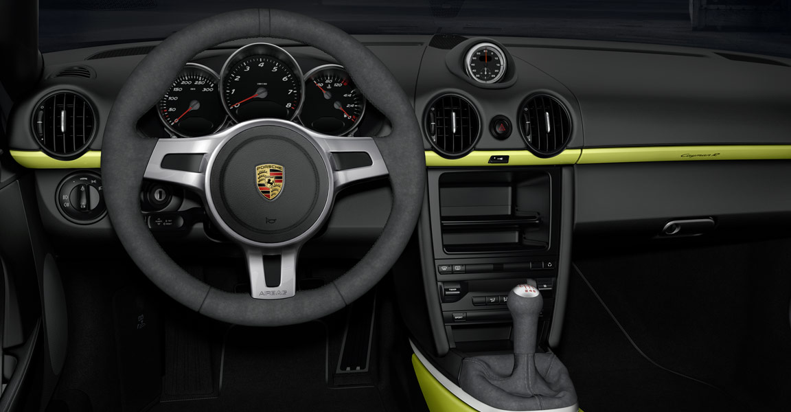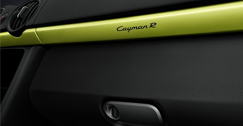 Al di là della colorazione verde acido, scelta per la presentazione mondiale e piuttosto inusuale, la nuova Porsche Cayman R si lascia riconoscere per i dettagli decorati in nero: il logo posteriore in rilievo, lo spoiler fisso, le decalcomanie applicate sulle pareti laterali della coupé sportiva, le calotte degli specchi retrovisori esterni e la cornice dei gruppi ottici anteriori. Lo so: a voi poco importa di queste frivolezze estetiche. Sotto il cofano, dite? Lo stesso motore 3,4 litri benzina, sei cilindri boxer, della versione Cayman S, con dieci cavalli aggiuntivi (totale? 330). La versione R della sportiva sarà equipaggiata con il cambio manuale a sei velocità o con quello automatico PDK a sette velocità. La nuova Porsche Cayman R raggiunge i cento chilometri orari in 5 secondi da ferma con cambio manuale (con PDK in 4,9 secondi o con pacchetto opzionale Sport Chrono in 4,7 secondi) e raggiunge la velocità massima di 282 chilometri orari (280 con cambio PDK). Il consumo? 9,7 litri ogni cento chilometri con trasmissione manuale e 9,3 litri ogni cento chilometri con cambio automatico.