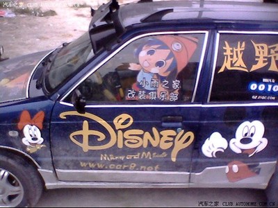 Caso esemplare di quanto appena detto è questa Suzuki Alto cinese, piccola vettura utilitaria presentata per la prima volta dalla casa nipponica nel 1979 ed attualmente fuori produzione, che è stata conciata in maniera abbastanza vergognosa dal suo “volubile” possessore. Con un miscuglio tra pupazzotti Disney e donnine provocanti è un (orrido) spettacolo che solo le immagini possono spiegare al meglio: