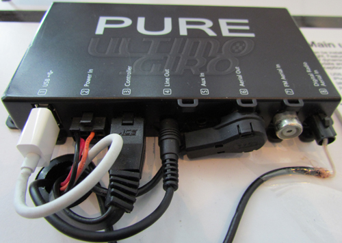 Pure Highway 300Di, particolare della Main Unit - UltimoGiro.comIl necessario di cui parlavamo include l’unità principale alla quale si collegherà la “vecchia” radio (integrata nella plancia del veicolo o di terze parti) e tutte le componenti ed i cavi atti al funzionamento del Pure Highway 300Di. All’unità principale è possibile collegare il classico cavo bianco dei dispositivi portatili di Apple quali iPod, iPhone e iPad per usufruire dei brani e delle playlist musicali in essi presenti. Il Pure Highway 300Di è infatti compatibile con i prodotti Apple, ma anche con qualsiasi “chiavetta” USB o disco rigido USB che insieme al kit proposto da Pure stessa possono garantire all’automobilista ed i suoi ospiti una scelta di brani estremamente ampia ed espandibile oltre a quelli in ascolto sulle varie emittenti radiofoniche.