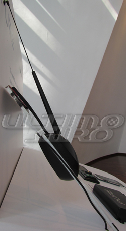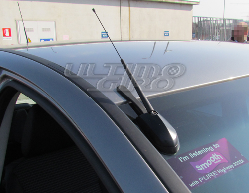 Tornando al kit Pure Highway 300Di, l’antenna inclusa è di tipo through-glass (immagine al lato), cioè in grado di trasmettere il segnale dall’esterno verso l’interno dell’abitacolo senza dover effettuare fori di alcun genere. La automobili che invece hanno un soft top oppure una scocca in fibra di vetro o in alluminio e non consentono l’uso dell’antenna contenuta nel kit possono montare altre antenne come quelle realizzate dalla Calearo.