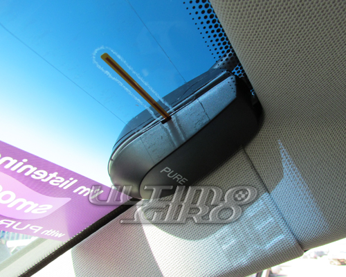 Pure Highway 300Di, particolare interno dell'antenna DAB (Digital Audio Broadcasting) montata su una Mercedes Classe A - UltimoGiro.com.jpgLa parte dell’antenna contenuta nel kit che va situata nell’abitacolo è piuttosto piccola come mostra l’immagine e, ovunque si decide di posizionare il sistema di ricezione di tipo through-glass, non ci sono limitazioni nella visibilità per chi guida.
