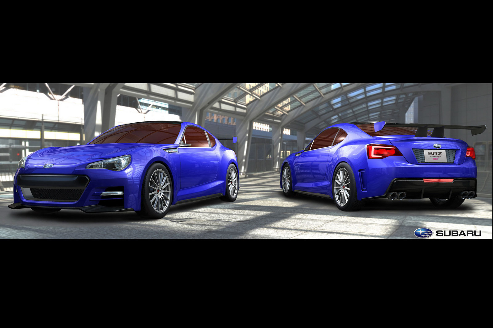 La nuova Subaru BRZ STI Concept è rigida e seria come molte altre vetture del listino del brand, a livello visivo: si nota la forte somiglianza con Subaru Impreza Concept. Linee imperiose contrastano con quelle morbide della nuova Toyota FT-86, che abbiamo avuto occasione di osservare in forma definitiva grazie ad alcune fotografie ufficiose.