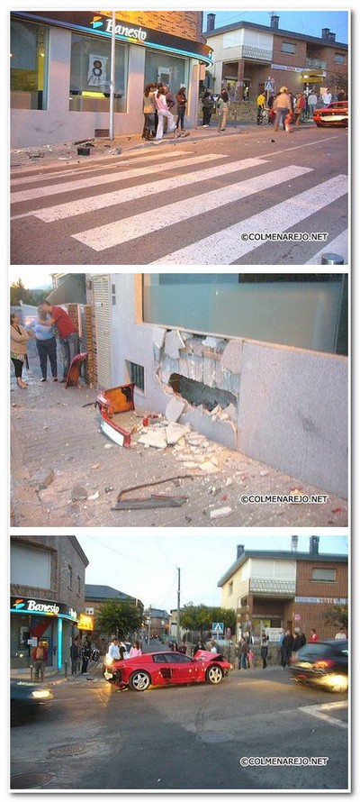 Una Ferrari Testarossa schiantata contro un muro di Colmenarejo, una città a nord di Madrid. A quanto pare, il guidatore ha perso il controllo del veicolo e non c’è stato nulla da fare: la “nostra bambina” si è ridotta come vedete nell’immagine sovrastante ed in quelle presenti dopo il salto.