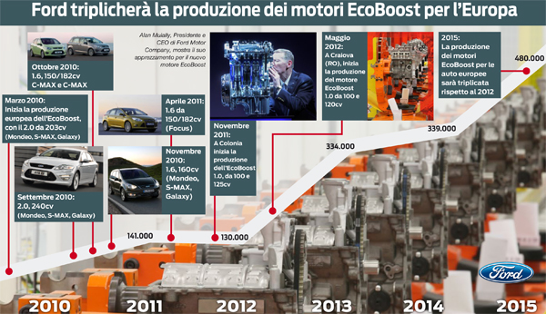L’elevata domanda di questo motore, già disponibile sulla Fiesta, sulla B-MAX, sulla Focus e sulla C-MAX e C-MAX7, “costringerà” Ford a raddoppiare la produzione a partire da agosto 2013 con un volume di 1000 unità al giorno. Scelta obbligata visto il prossimo sbarco del motore anche su altri modelli.