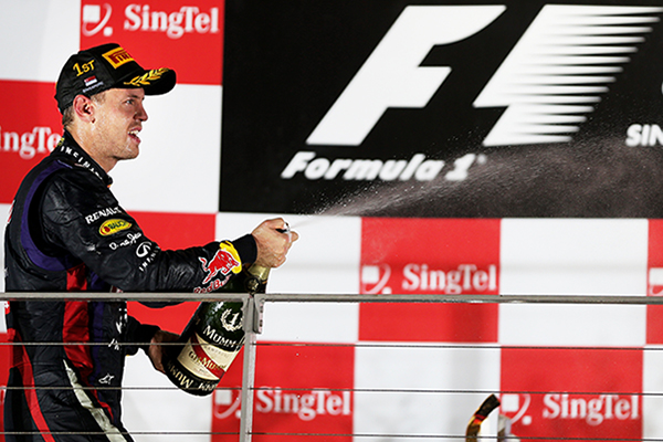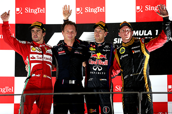 GP Singapore 2013, Vettel sul gradino più alto del podio dei campioni del mondo