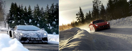 Lamborghini Aventador e Ferrari F, fantastiche anche sulla neve…