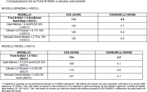 Nuova Ford B-MAX, consumi ed emissioni di CO2 al minimo per le versioni benzina e diesel
