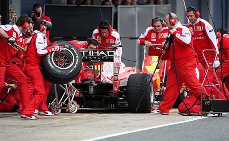 Il numero vincente della Ferrari? Puntate sul 14. Esattamente come gli uomini che servono per il nuovo pit stop della F10 che è stata studiata per rispettare il regolamento del campionato 2010. Se in passato servivano 17 meccanici, adesso tre di loro possono comodamente sedere all’interno dei box. Ma le novità non finiscono qui, perché la scuderia di Maranello ha studiato fin nei minimi particolari le future soste delle monoposto e visto che i sorpassi in pista sono diventati sempre meno frequenti, la strategia della Rossa potrebbe risultare vincente. Iniziamo a capire quali meccanici non dovranno più intervenire nel pt stop. Innanzitutto gli addetti al rifornimento del carburante, visto che le nuove regole impongono alle macchine di caricare la benzina prima della partenza (e per questo le vetture si ritrovano con la pancia larga dove è stato inserito l’enorme serbatoio da più di 200 litri).