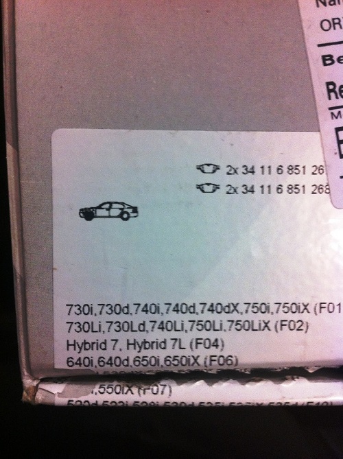Che cosa sta preparando per i prossimi anni la casa automobilistica BMW? Non è facile scoprire quali sorprese il brand bavarese stia confezionando nel segreto dei propri stabilimenti, ma oggi possiamo dare un assaggio al futuro della società tedesca dell’Elica, grazie a queste due fotografie: ritraggono l’etichetta di uno scatolone contente pattini freno, sulla quale sono indicati tutti i modelli che li possono utilizzare. Tra questi anche due vetture di cui, sino ad oggi, avevamo solo fatto ipotesi (forse neppure tutte vere), entrambe contraddistinte da una sigla: F06 e BMW M550xd. Che cosa significano?