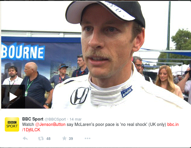 E se i due sono degni di nota, per meriti differenti, che dire di Button? Per carità, anche bello. È un tipo ma dopo essere stato conosciuto senza alcun pelo, poi barbuto, adesso si ripresenta davanti alle telecamere con un discutibile baffetto malandrino che lo invecchia da morire.
