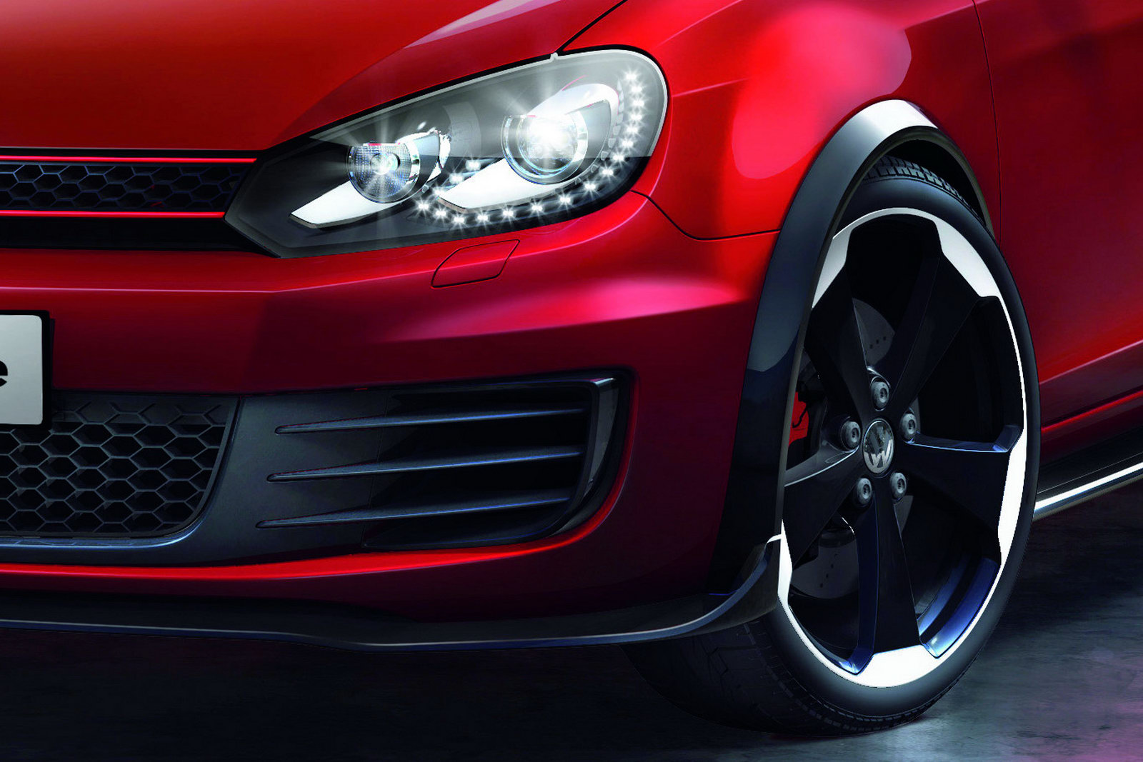 La nuova Volkswagen Golf GTI Cabriolet viene contraddistinta da un’anima sportiva, che energicamente fuoriesce dalla carrozzeria per mezzo del paraurti anteriore, del paraurti posteriore, dei terminali dell’impianto di scarico, dei cerchi in lega sportivi, dello spoiler anteriore, delle minigonne laterali (l’aggressività è la prima caratteristica che si nota di questa concept car). Neppure in questo caso, come già accaduto per Volkswagen Golf R Cabriolet, possiamo osservare lo spazio abitativo della coniugazione speciale.