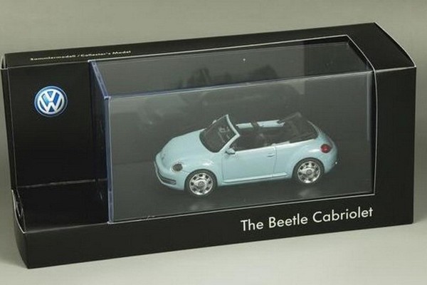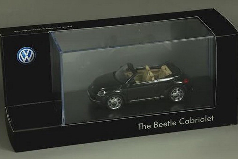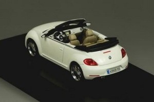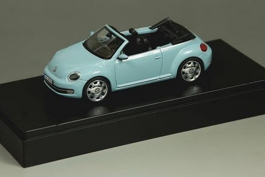 Infatti, la nuova Maggiolino Cabriolet è stata ritratta senza alcun camuffamento, ma in un modo del tutto particolare: infatti, sul web stanno circolando delle immagini in cui sono presenti i modellini (in scala 1:43) della vettura, che sono stati sviluppati dal marchio tedesco Schuco Modell in tre diverse colorazioni.